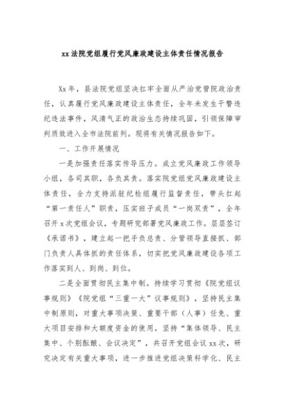 / 【七哥公文】2025年:xx法院党组履行党风廉政建设主体责任情况报告+更多免费公文+VX:QiGeGongWen2024