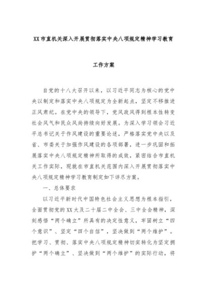 【七哥公文】2025年:XX市直机关深入开展贯彻落实中央八项规定精神学习教育工作方案+更多免费公文+VX:QiGeGongWen2024