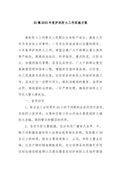 / 【七哥公文】2025年:XX镇2025年度护林防火工作实施方案+更多免费公文+VX:QiGeGongWen2024
