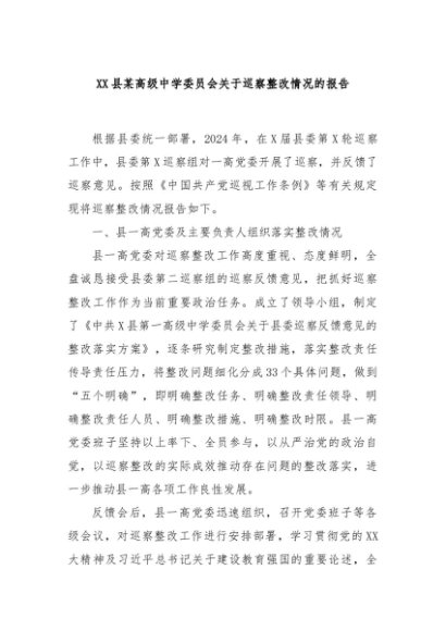 / 【七哥公文】2025年:XX县某高级中学委员会关于巡察整改情况的报告+更多免费公文+VX:QiGeGongWen2024