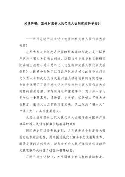 / 【七哥公文】2025年:党课讲稿:坚持和完善人民代表大会制度的科学指引+更多免费公文+VX:QiGeGongWen2024