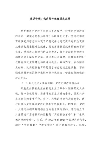 / 【七哥公文】2025年:党课讲稿:党内纪律教育历史回顾+更多免费公文+VX:QiGeGongWen2024