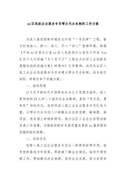 / 【七哥公文】2025年:xx区选派企业服务专员帮办代办机制的工作方案+更多免费公文+VX:QiGeGongWen2024