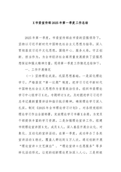/ 【七哥公文】2025年:X市委宣传部2025年第一季度工作总结+更多免费公文+VX:QiGeGongWen2024