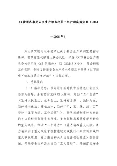 【七哥公文】2025年:XX街道办事处安全生产治本攻坚三年行动实施方案(2024—2026年)+更多免费公文+VX:QiGeGongWen2024