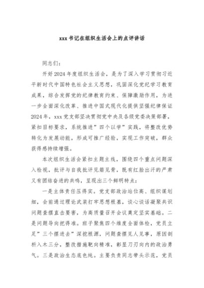 【七哥公文】2025年:xxx书记在组织生活会上的点评讲话+更多免费公文+VX:QiGeGongWen2024