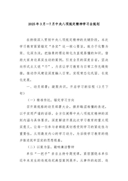 / 【七哥公文】2025年:2025年3月-7月中央八项规定精神学习全规划+更多免费公文+VX:QiGeGongWen2024