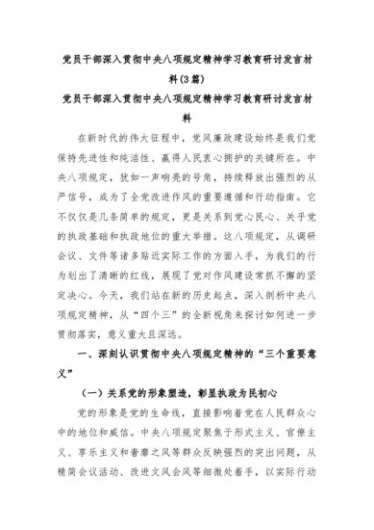 【七哥公文】2025年:(3篇)党员干部深入贯彻中央八项规定精神学习教育研讨发言材料+更多免费公文+VX:QiGeGongWen2024