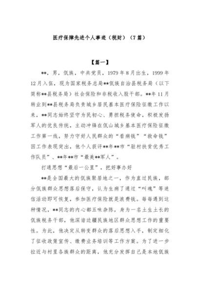 / 【七哥公文】2025年:(7篇)医疗保障先进个人事迹(税财)+更多免费公文+VX:QiGeGongWen2024