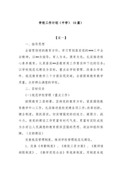 / 【七哥公文】2025年:(6篇)学校工作计划(中学)+更多免费公文+VX:QiGeGongWen2024