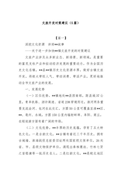 【七哥公文】2025年:(5篇)文旅开发对策建议+更多免费公文+VX:QiGeGongWen2024