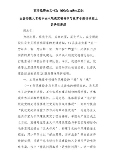 【七哥公文】2025年:在县委深入贯彻中央八项规定精神学习教育专题读书班上的讲话提纲+更多免费公文+VX:QiGeGongWen2024+更多免费公文+VX:QiGeGongWen2024