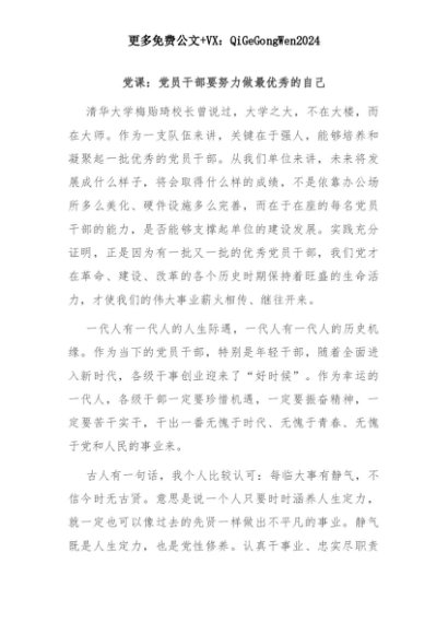 【七哥公文】2025年:党课:党员干部要努力做最优秀的自己+更多免费公文+VX:QiGeGongWen2024+更多免费公文+VX:QiGeGongWen2024
