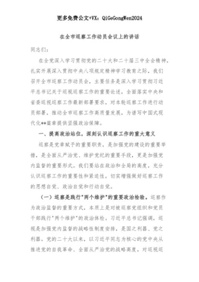 【七哥公文】2025年:在全市巡察工作动员会议上的讲话+更多免费公文+VX:QiGeGongWen2024+更多免费公文+VX:QiGeGongWen2024