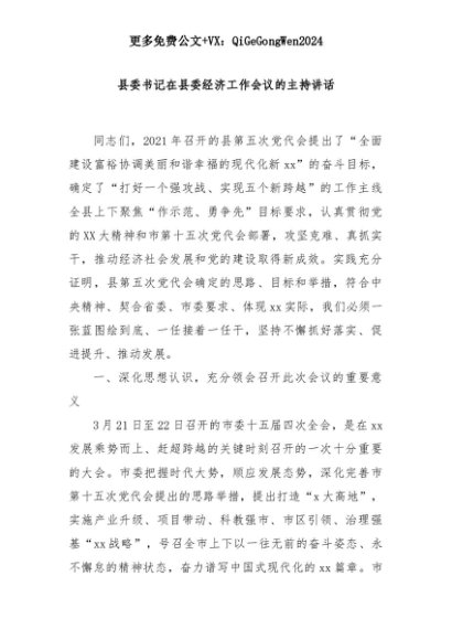 【七哥公文】2025年:县委书记在县委经济工作会议的主持讲话+更多免费公文+VX:QiGeGongWen2024+更多免费公文+VX:QiGeGongWen2024
