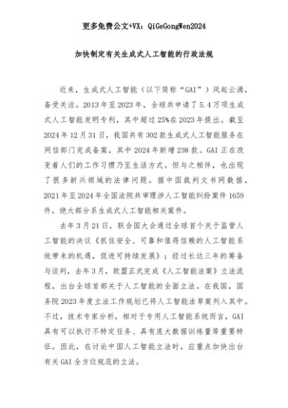 【七哥公文】2025年:加快制定有关生成式人工智能的行政法规+更多免费公文+VX:QiGeGongWen2024+更多免费公文+VX:QiGeGongWen2024