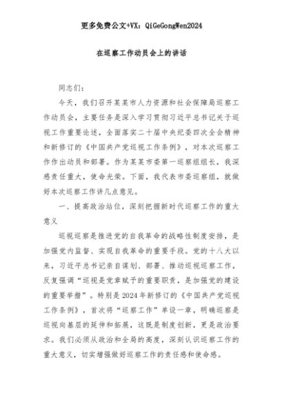 【七哥公文】2025年:在巡察工作动员会上的讲话+更多免费公文+VX:QiGeGongWen2024+更多免费公文+VX:QiGeGongWen2024