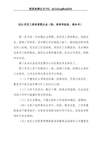 【七哥公文】2025年:XX公司员工待岗管理办法+更多免费公文+VX:QiGeGongWen2024+更多免费公文+VX:QiGeGongWen2024