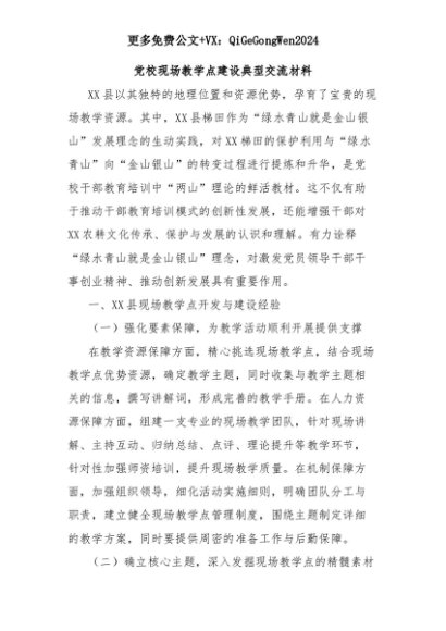 【七哥公文】2025年:党校现场教学点建设典型交流材料+更多免费公文+VX:QiGeGongWen2024+更多免费公文+VX:QiGeGongWen2024