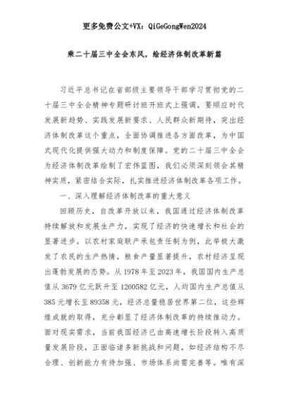 【七哥公文】2025年:乘二十届三中全会东风,绘经济体制改革新篇+更多免费公文+VX:QiGeGongWen2024+更多免费公文+VX:QiGeGongWen2024