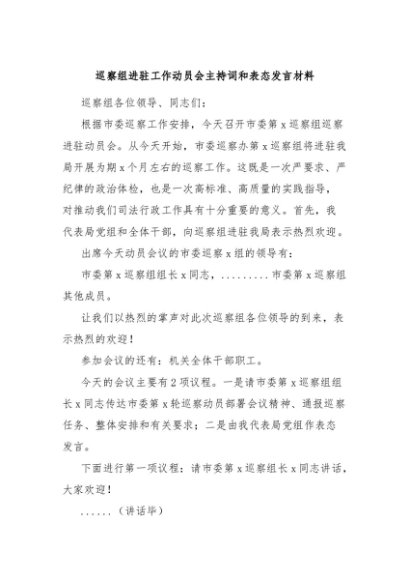 / 【七哥公文】2025年:巡察组进驻工作动员会主持词和表态发言材料+更多免费公文+VX:QiGeGongWen2024