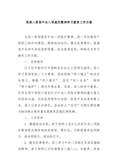 / 【七哥公文】2025年:局深入贯彻中央八项规定精神学习教育工作方案2+更多免费公文+VX:QiGeGongWen2024