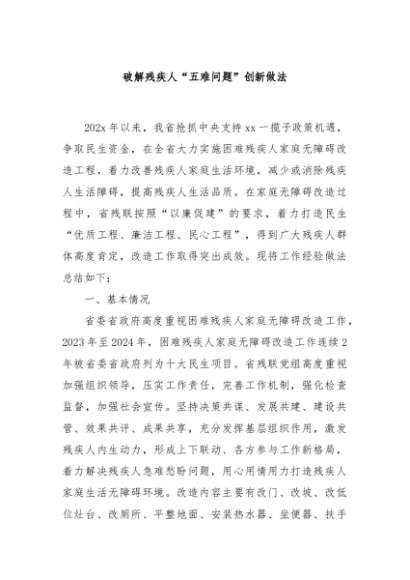 / 【七哥公文】2025年:破解残疾人“五难问题”创新做法+更多免费公文+VX:QiGeGongWen2024