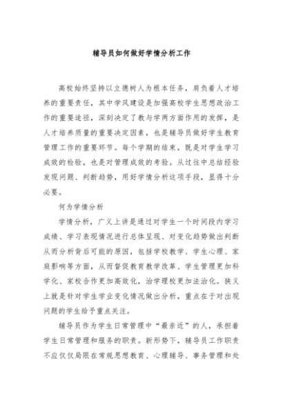 【七哥公文】2025年:辅导员如何做好学情分析工作+更多免费公文+VX:QiGeGongWen2024