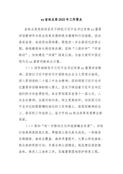 / 【七哥公文】2025年:xx省林业局2025年工作要点+更多免费公文+VX:QiGeGongWen2024