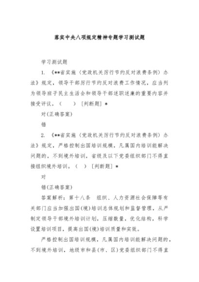/ 【七哥公文】2025年:落实中央八项规定精神专题学习测试题+更多免费公文+VX:QiGeGongWen2024