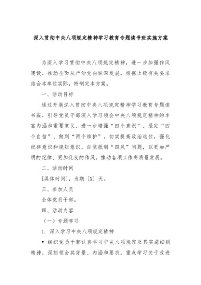 【七哥公文】2025年:深入贯彻中央八项规定精神学习教育专题读书班实施方案+更多免费公文+VX:QiGeGongWen2024