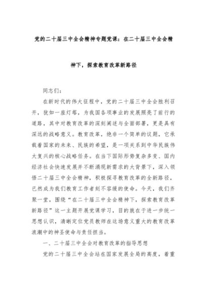 【七哥公文】2025年:党的二十届三中全会精神专题党课:在二十届三中全会精神下,探索教育改革新路径+更多免费公文+VX:QiGeGongWen2024