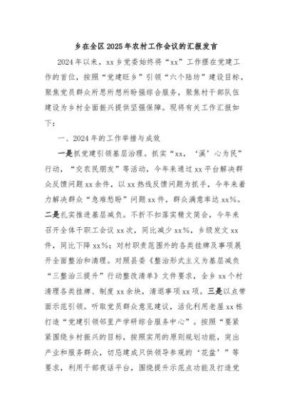 / 【七哥公文】2025年:乡在全区2025年农村工作会议的汇报发言+更多免费公文+VX:QiGeGongWen2024