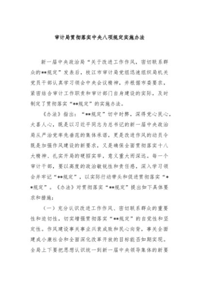 【七哥公文】2025年:审计局贯彻落实中央八项规定实施办法+更多免费公文+VX:QiGeGongWen2024