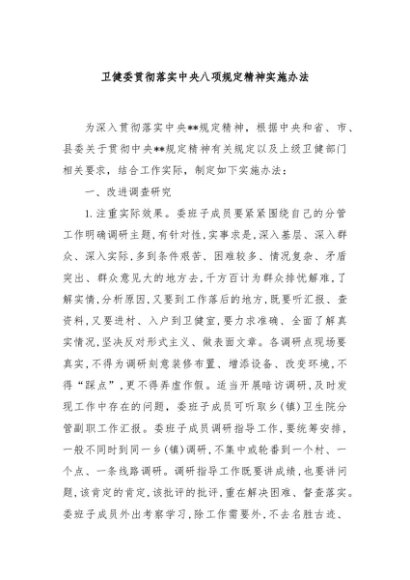 / 【七哥公文】2025年:卫健委贯彻落实中央八项规定精神实施办法+更多免费公文+VX:QiGeGongWen2024