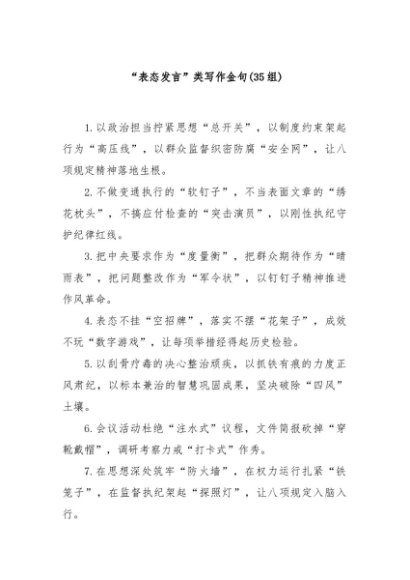 / 【七哥公文】2025年:(35组)“表态发言”类写作金句+更多免费公文+VX:QiGeGongWen2024