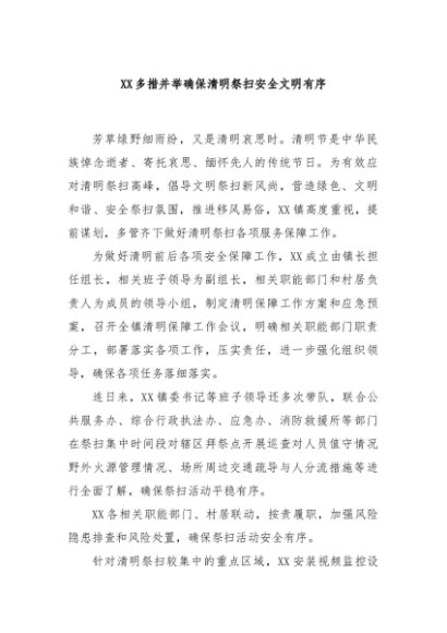 【七哥公文】2025年:XX多措并举确保清明祭扫安全文明有序+更多免费公文+VX:QiGeGongWen2024