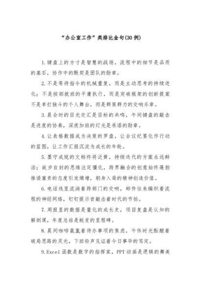 / 【七哥公文】2025年:(30例)“办公室工作”类排比金句+更多免费公文+VX:QiGeGongWen2024