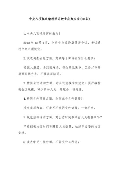 【七哥公文】2025年:(30条)中央八项规定精神学习教育应知应会+更多免费公文+VX:QiGeGongWen2024