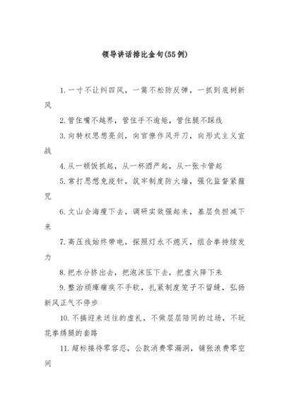 / 【七哥公文】2025年:(55例)领导讲话排比金句+更多免费公文+VX:QiGeGongWen2024