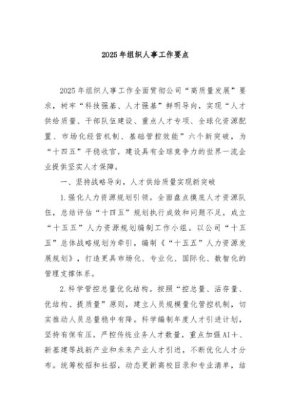 / 【七哥公文】2025年:2025年组织人事工作要点+更多免费公文+VX:QiGeGongWen2024