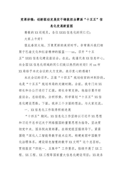 【七哥公文】2025年:党课讲稿:创新驱动发展实干铸就担当擘画“十五五”信息化发展新蓝图+更多免费公文+VX:QiGeGongWen2024