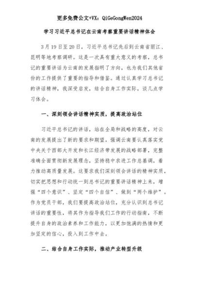 【七哥公文】2025年:学习在云南考察时的重要讲话精神心得体会+更多免费公文+VX:QiGeGongWen2024+更多免费公文+VX:QiGeGongWen2024