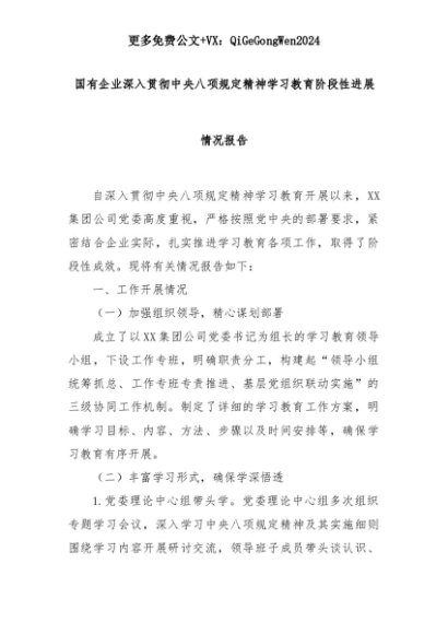 【七哥公文】2025年:国有企业深入贯彻中央八项规定精神学习教育阶段性进展情况报告+更多免费公文+VX:QiGeGongWen2024+更多免费公文+VX:QiGeGongWen2024