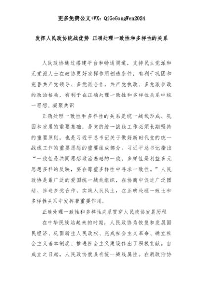 【七哥公文】2025年:发挥人民政协统战优势 正确处理一致性和多样性的关系+更多免费公文+VX:QiGeGongWen2024+更多免费公文+VX:QiGeGongWen2024