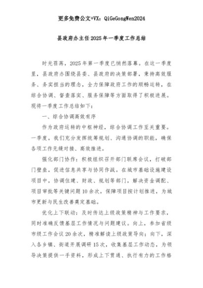 【七哥公文】2025年:县政府办主任2025年一季度工作总结+更多免费公文+VX:QiGeGongWen2024+更多免费公文+VX:QiGeGongWen2024