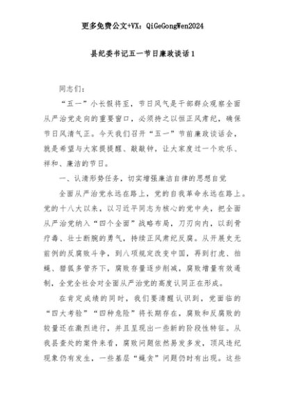 【七哥公文】2025年:县纪委书记五一节日廉政谈话1+更多免费公文+VX:QiGeGongWen2024+更多免费公文+VX:QiGeGongWen2024