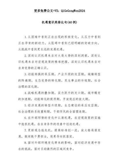 【七哥公文】2025年:(40例)机遇意识类排比句+更多免费公文+VX:QiGeGongWen2024+更多免费公文+VX:QiGeGongWen2024