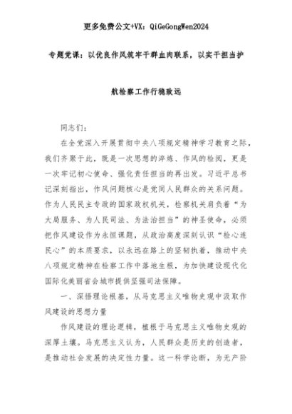 【七哥公文】2025年:专题党课:以优良作风筑牢干群血肉联系,以实干担当护航检察工作行稳致远+更多免费公文+VX:QiGeGongWen2024+更多免费公文+VX:QiGeGongWen2024