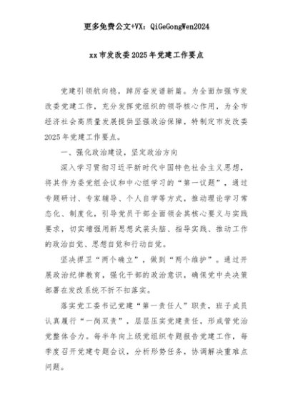 【七哥公文】2025年:xx市发改委2025年党建工作要点+更多免费公文+VX:QiGeGongWen2024+更多免费公文+VX:QiGeGongWen2024